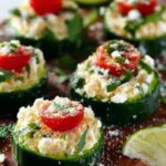 Infuse your Easy Feta Cucumber Bites with personal flair by experimenting with ingredients. Swap traditional feta for a goat cheese log or dairy-free alternative for varied textures. Enhance flavor with fresh dill, mint, or a sprinkle of za’atar. A hint of lemon zest or finely diced red bell pepper can also add a vibrant twist, catering to diverse palates and making each bite unique.