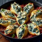 Imagine perfectly al dente jumbo pasta shells, generously filled with a luscious mixture of fresh, vibrant spinach, creamy ricotta cheese, and a harmonious blend of fragrant herbs and mild spices. Each shell becomes a delightful parcel of flavor and texture, baked until golden and bubbling. It’s a fantastic way to effortlessly incorporate more nutritious vegetables into your diet without sacrificing an ounce of deliciousness, making healthy eating utterly irresistible for everyone at the table.