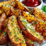 PrintGarlic Parmesan Potato Wedges: Easy Baked Comfort Food Side Dish