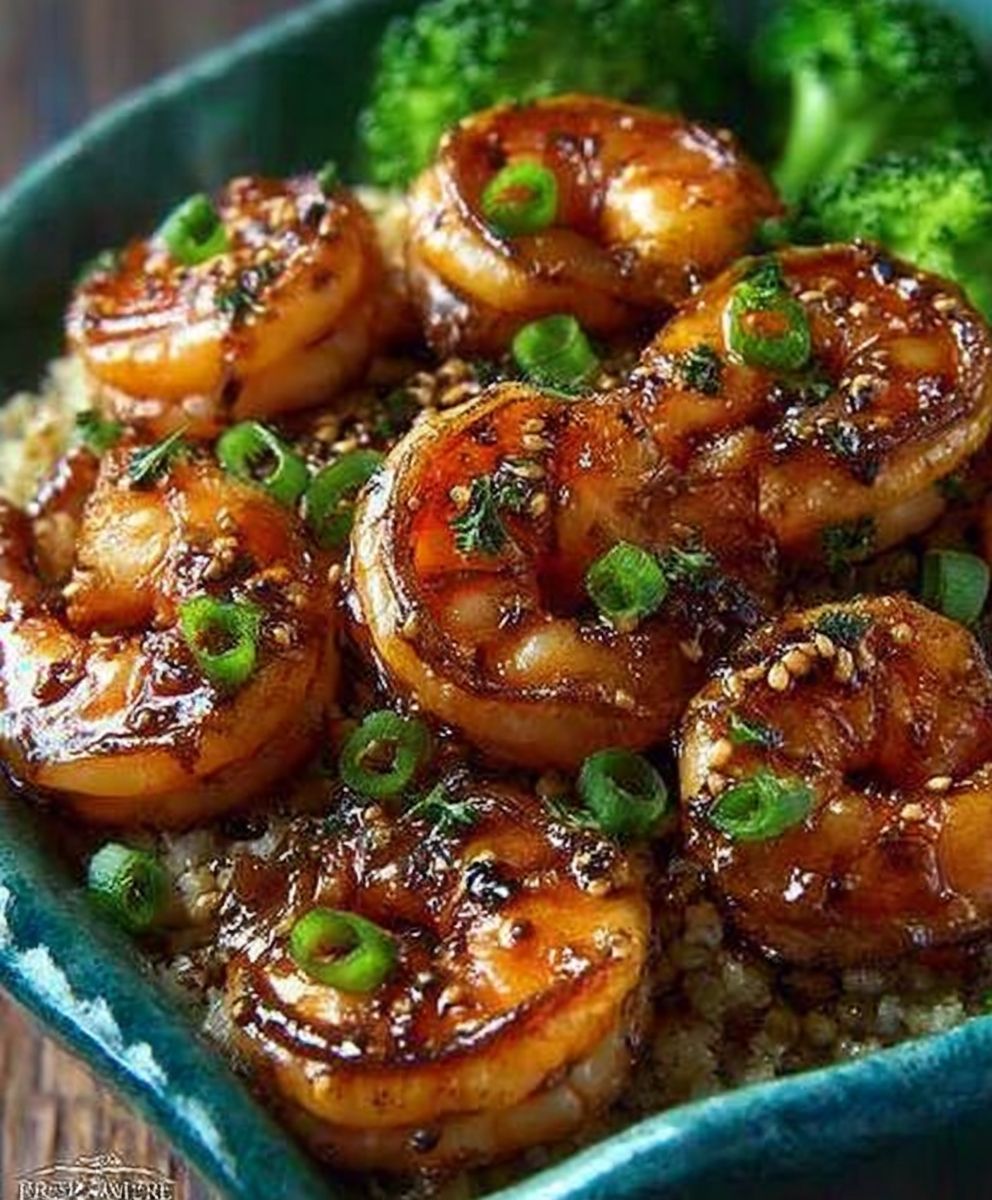 • For a satisfying meal, serve this honey garlic shrimp over fluffy jasmine rice or quinoa, complemented by a side of steamed broccoli or a fresh green salad.